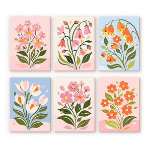 Mini Paint by numbers 15x20cm (6 pieces) - Spring Flowers