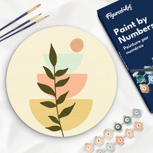 Paint by numbers on Wood Slice - Abstract Botanical Art 2