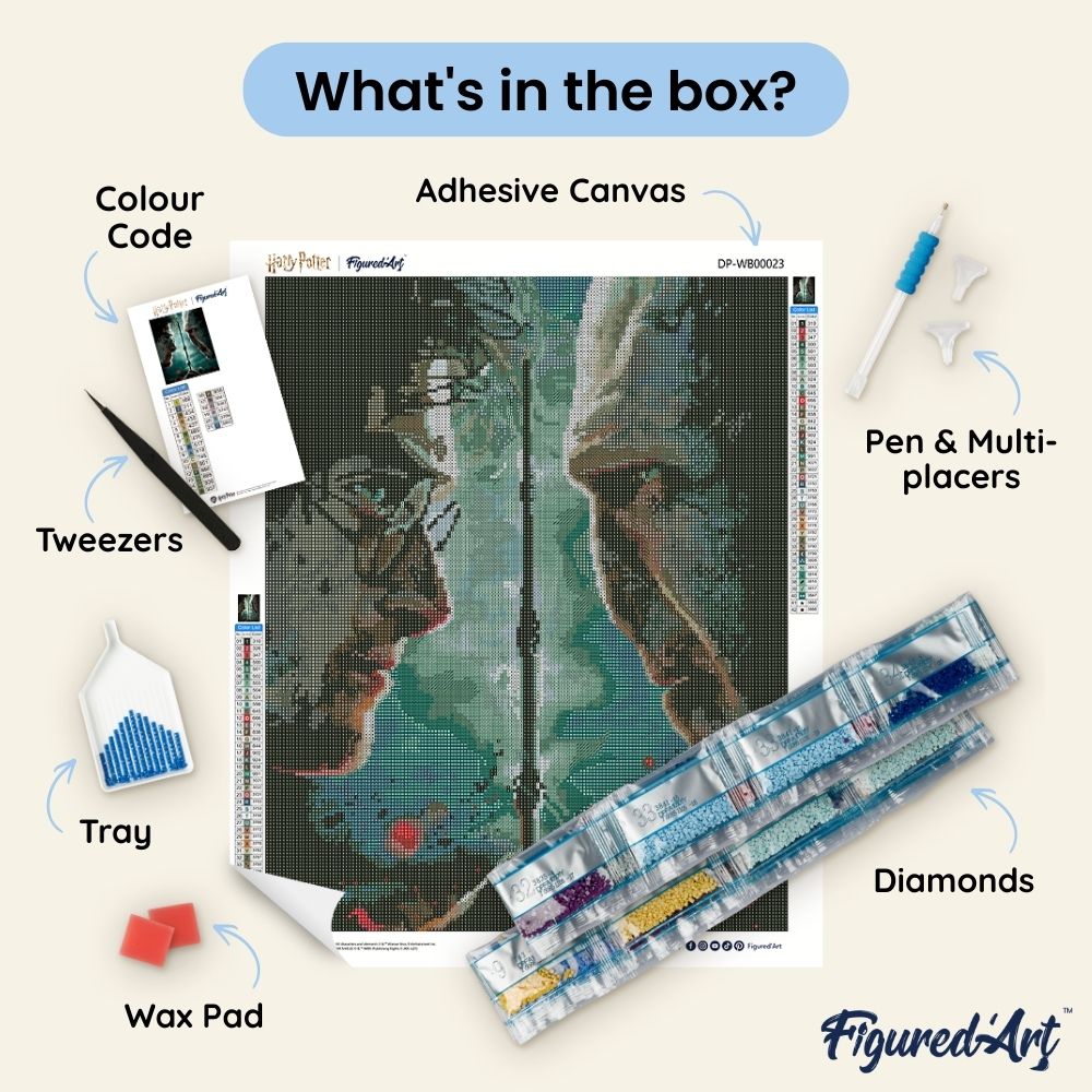 Dive into the magical world of Harry Potter with this officially licensed Wizarding World & Warner Bros. diamond painting kit. Whether you've been a fan of the saga forever or you're looking for the perfect gift, every diamond placed becomes a moment of relaxation and creativity and the result, a truly sparkling work of art to hang at home.
