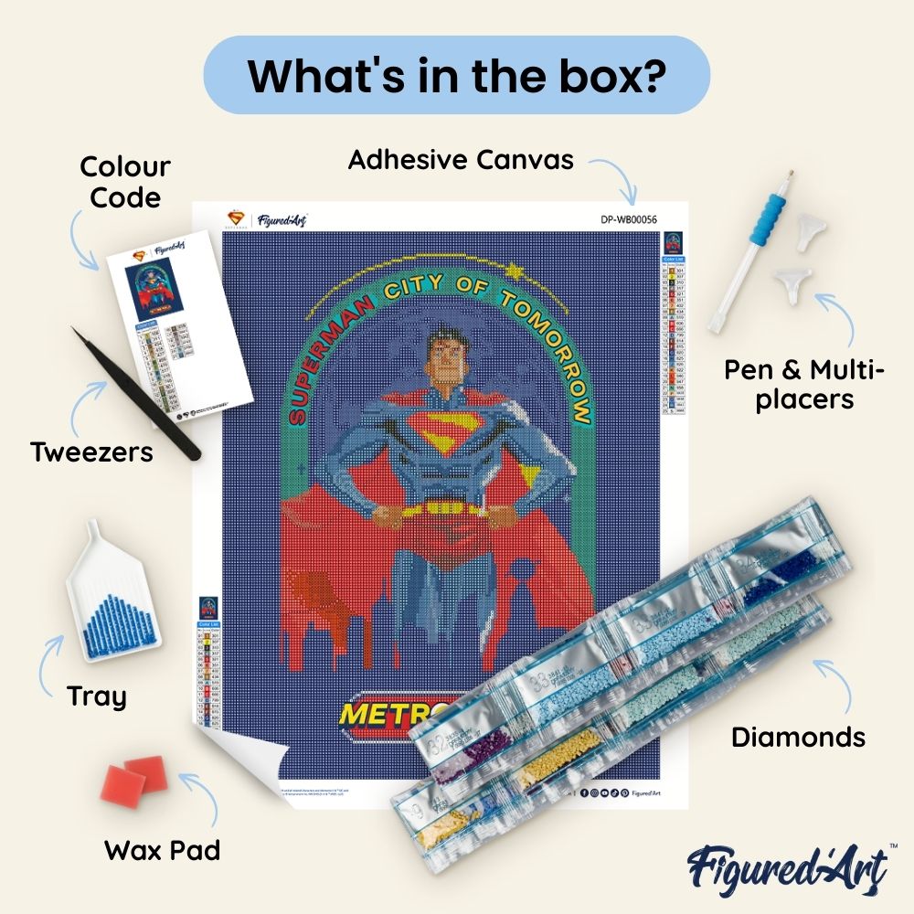 Dive into the legendary world of Superman with this officially licensed DC & Warner Bros. diamond painting kit. Whether you're a lifelong fan or looking for the perfect gift, every diamond placed becomes a moment of relaxation and creativity and the result, a truly sparkling work of art to hang at home.