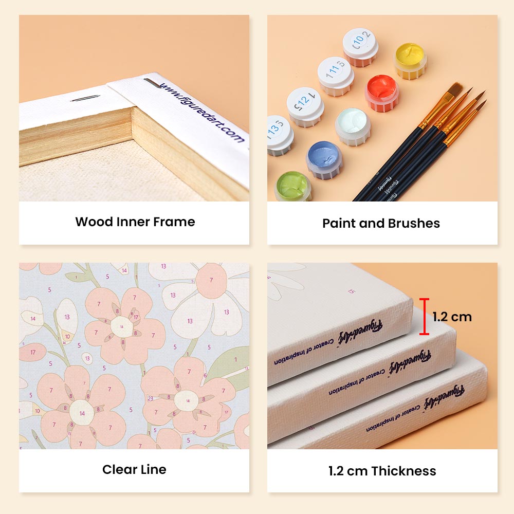 Unleash your creativity with the Figured'Art Mini Paint by Numbers Set, featuring small numbered linen canvases. This relaxing and guided painting by numbers experience is accessible to everyone, perfect to express your artistic side, decorate your home, or gift a creative moment to someone special.