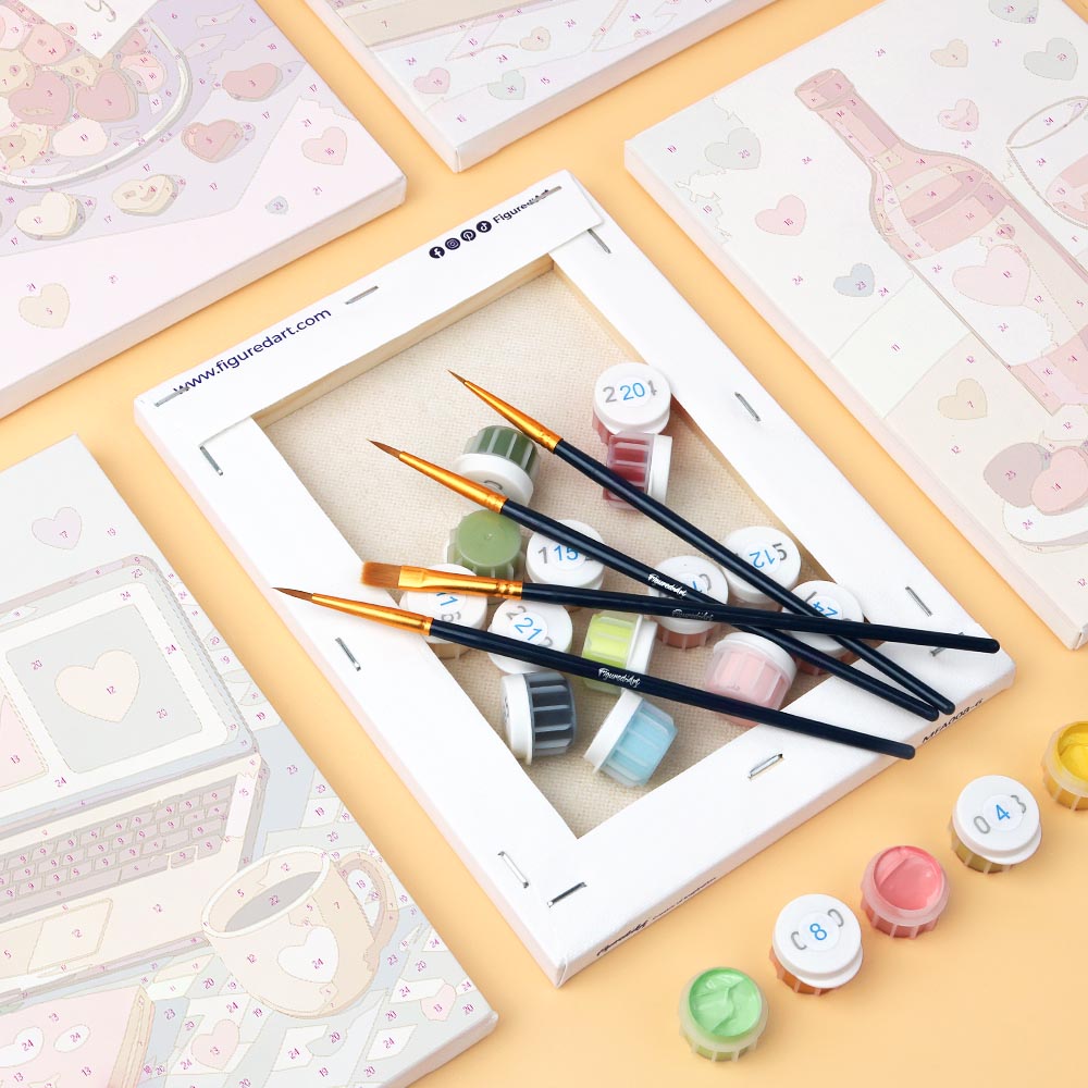 Unleash your creativity with the Figured'Art Mini Paint by Numbers Set, featuring small numbered linen canvases. This relaxing and guided painting by numbers experience is accessible to everyone, perfect to express your artistic side, decorate your home, or gift a creative moment to someone special.