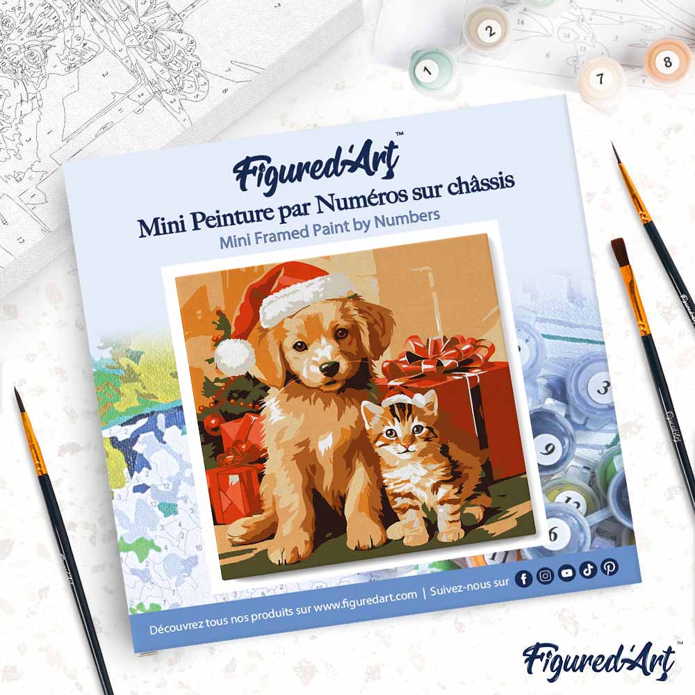 Mini Paint by numbers Christmas Cat and Dog 20x20cm already framed Figured'Art UK