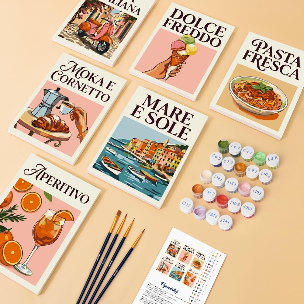These mini paint by numbers kits are an ideal alternative to large formats: compact, practical, and quick to complete. Perfect for beginners and hobbycraft paint by numbers enthusiasts who want to enjoy creative and rewarding small projects, even with little time available. They are also a great idea for creative gatherings or painting evenings with friends, everyone can paint their own mini canvas while chatting, enjoying music, and snacks.