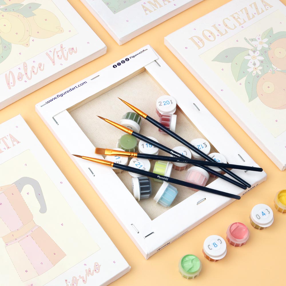 Unleash your creativity with the Figured'Art Mini Paint by Numbers Set, featuring small numbered linen canvases. This relaxing and guided painting by numbers experience is accessible to everyone, perfect to express your artistic side, decorate your home, or gift a creative moment to someone special.