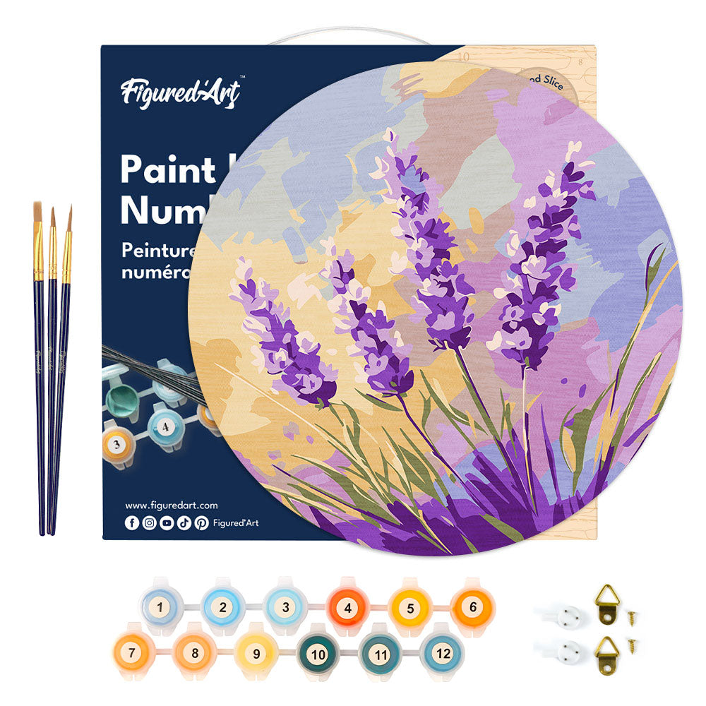 Paint by numbers on Wood Slice - Lavender Figured'Art UK