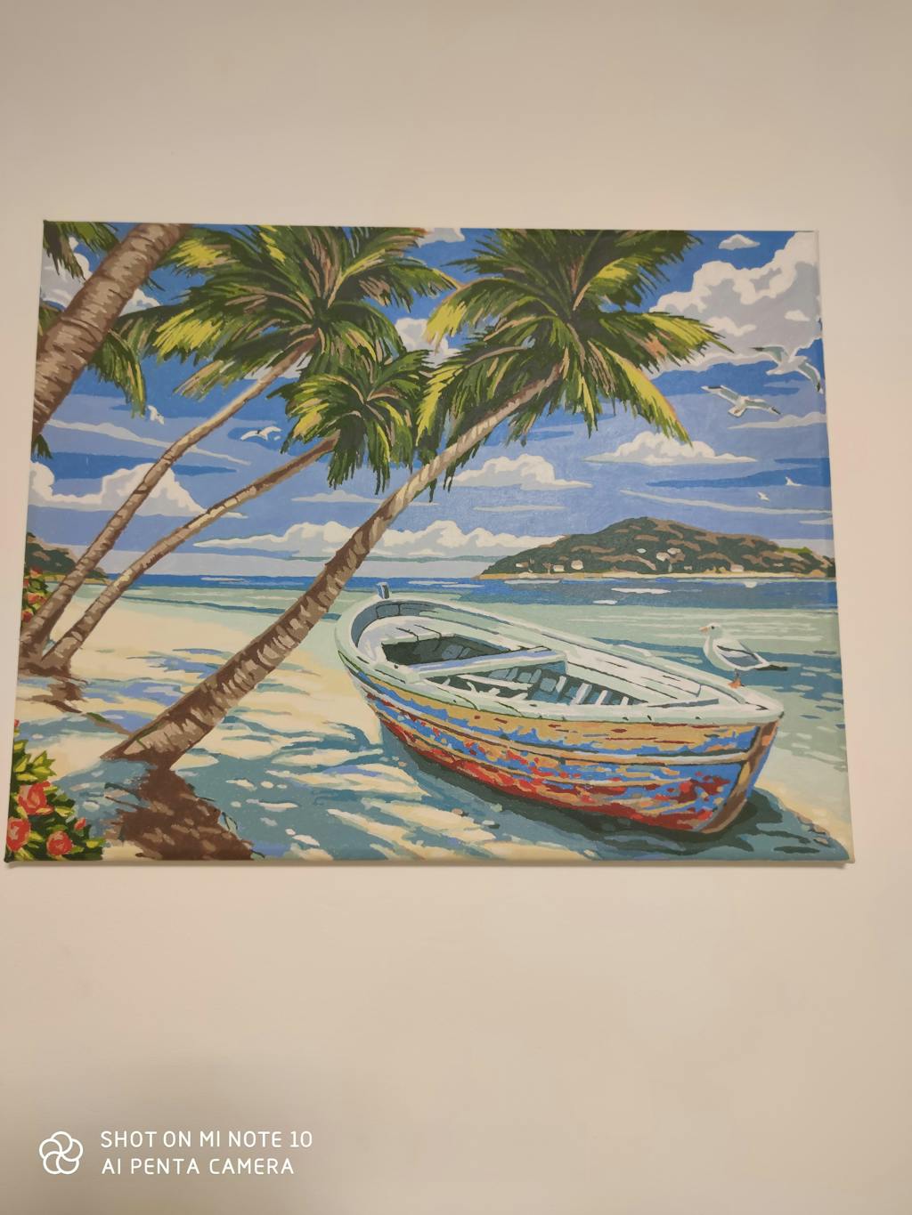 Full kit of paint by numbers already stretched on a wooden frame.