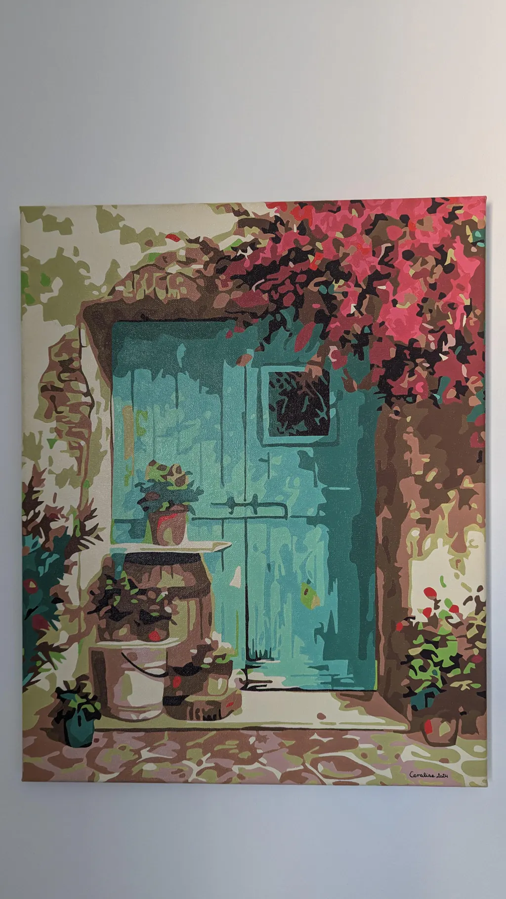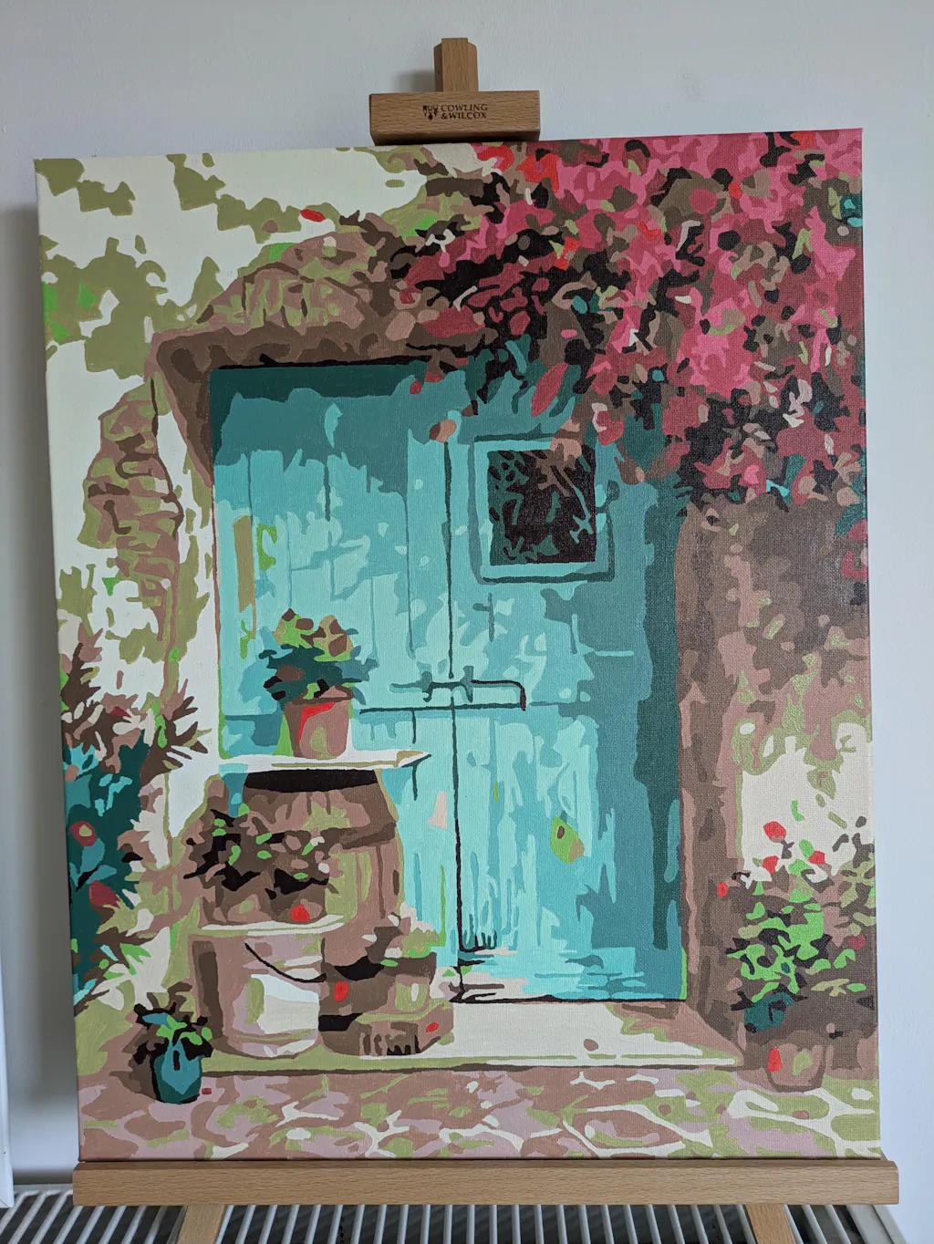 Enjoyable and easy canvas to paint. Pretty result. Taking off one star because one pot of colour #7 wasn't enough — especially with 2 coats.