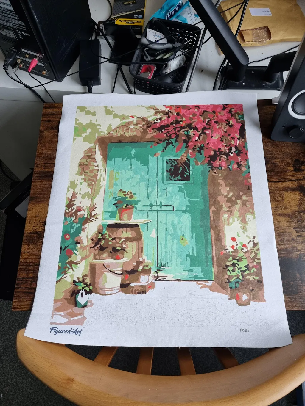 Full kit of paint by numbers already stretched on a wooden frame.