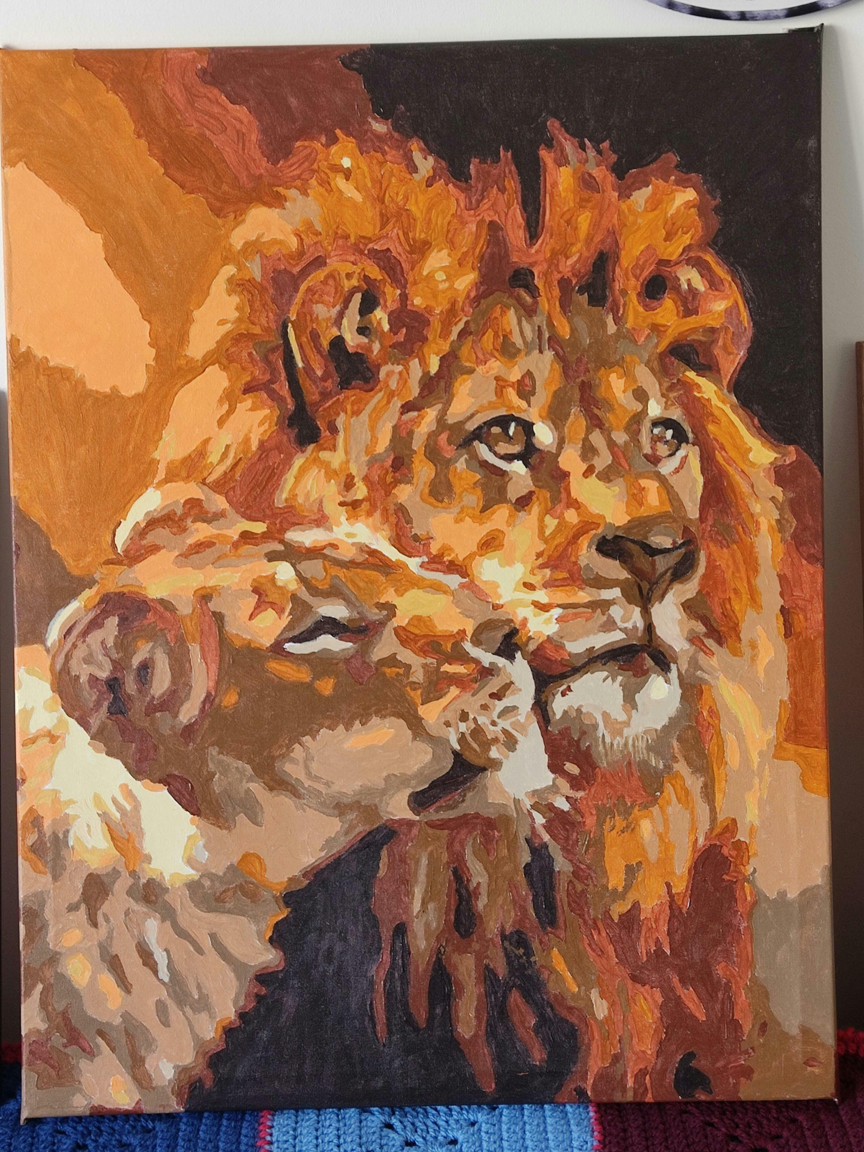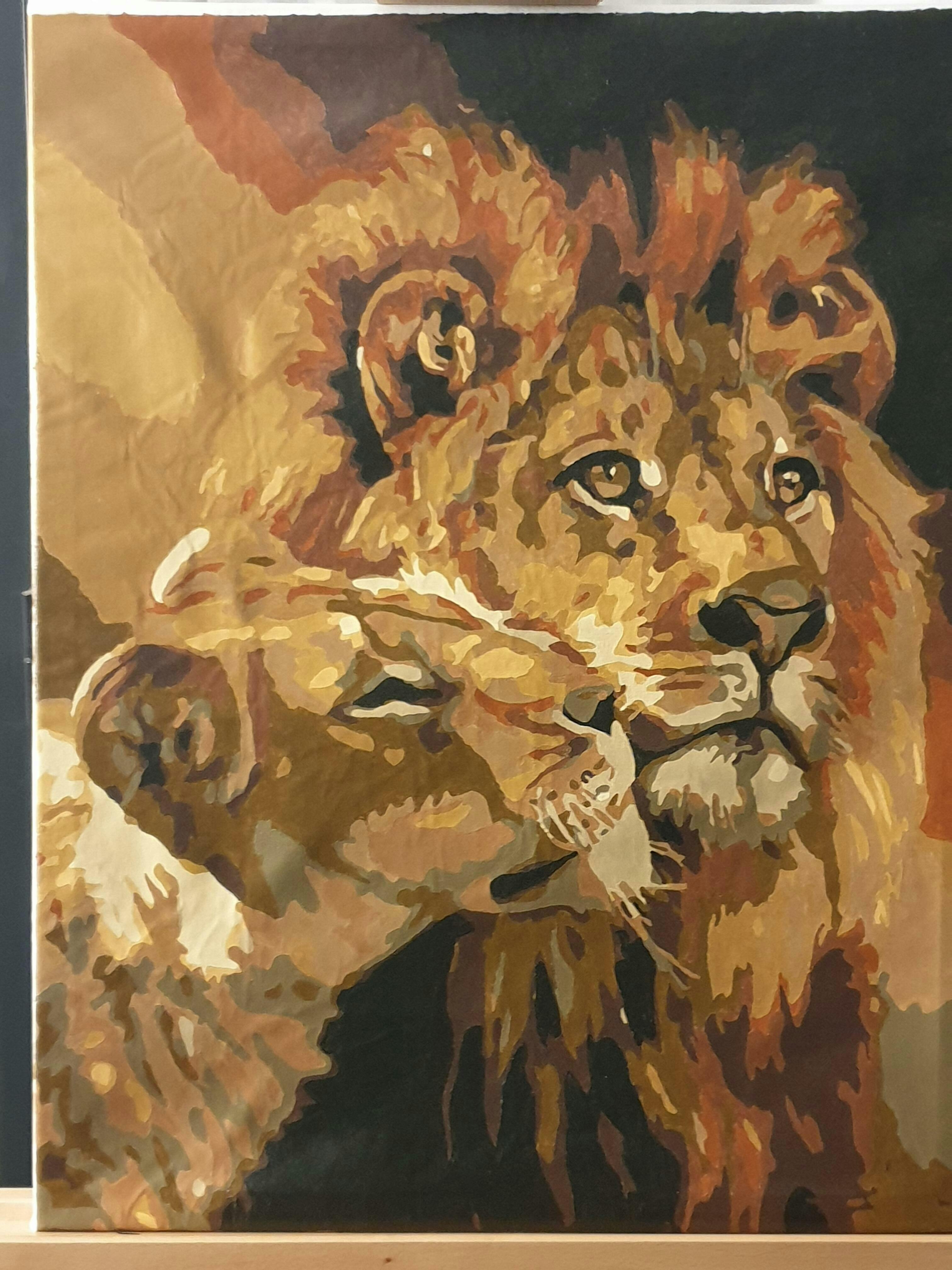 2) You will receive a ready-to-use kit containing the canvas with the numbered areas, the numbered pots of paints, paint brushes and a picture of the expected result to guide you. Let the journey begin!