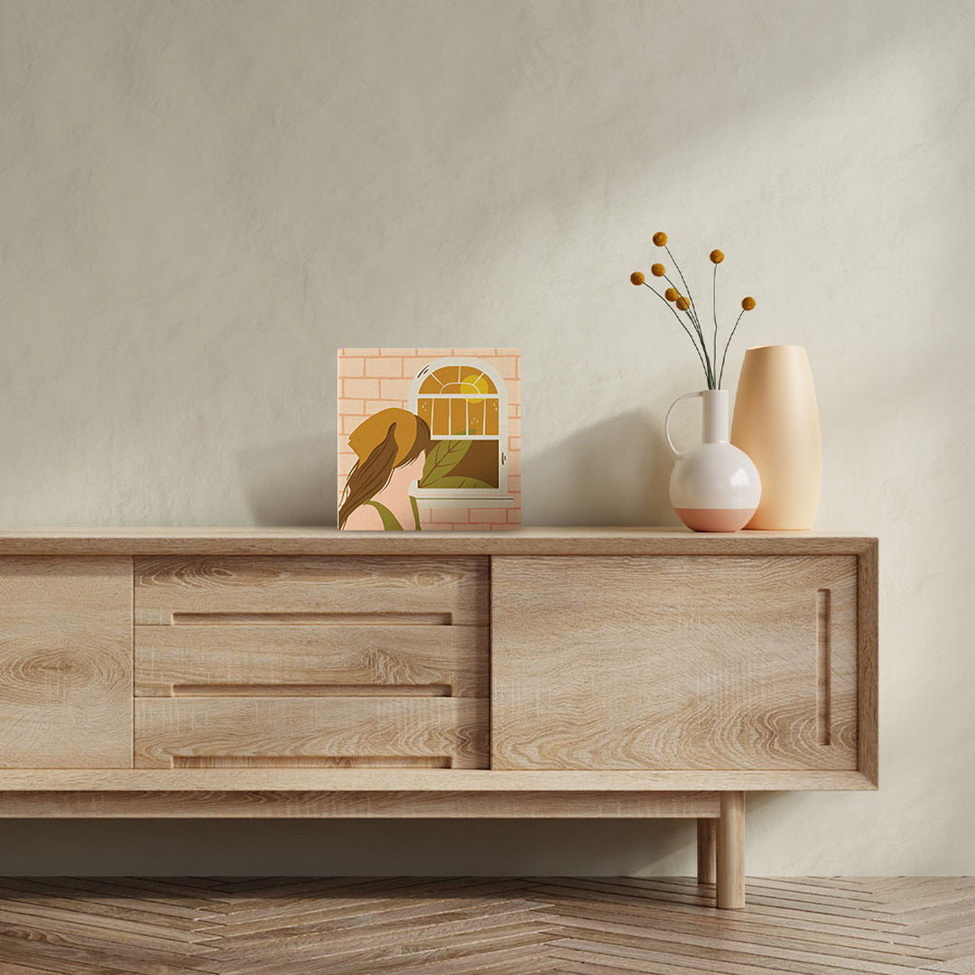Model: Mini Paint by numbers Girl looking out window 20x20cm already framed