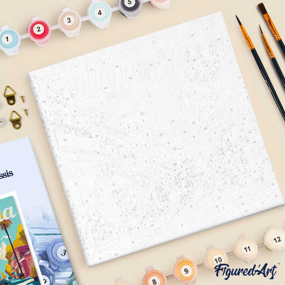 Model: Mini Paint by numbers Travel Poster California Street 20x20cm already framed