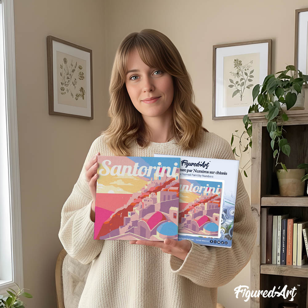 Model: Mini Paint by numbers Travel Poster Santorini Sunset 20x20cm already framed