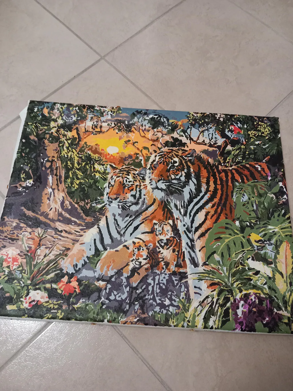 Full kit of paint by numbers with rolled canvas (no fold) and a do-it-yourself wooden frame.