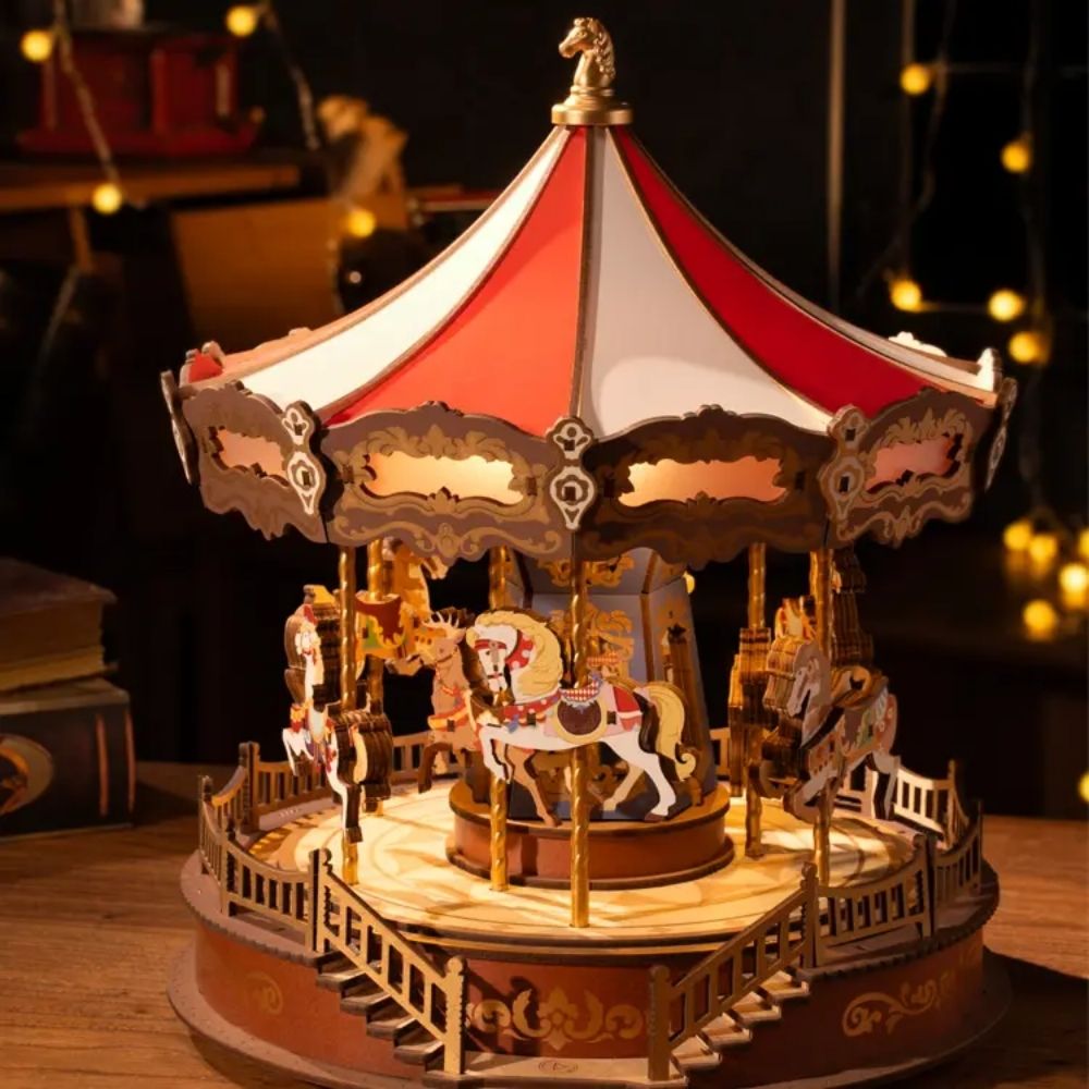 Add a touch of magic to your space with this 3D carousel. This kit allows you to recreate a classic carousel with wooden horses, warm lights, and classical music. The assembly is simple thanks to an interlock joint system, with no glue needed.
