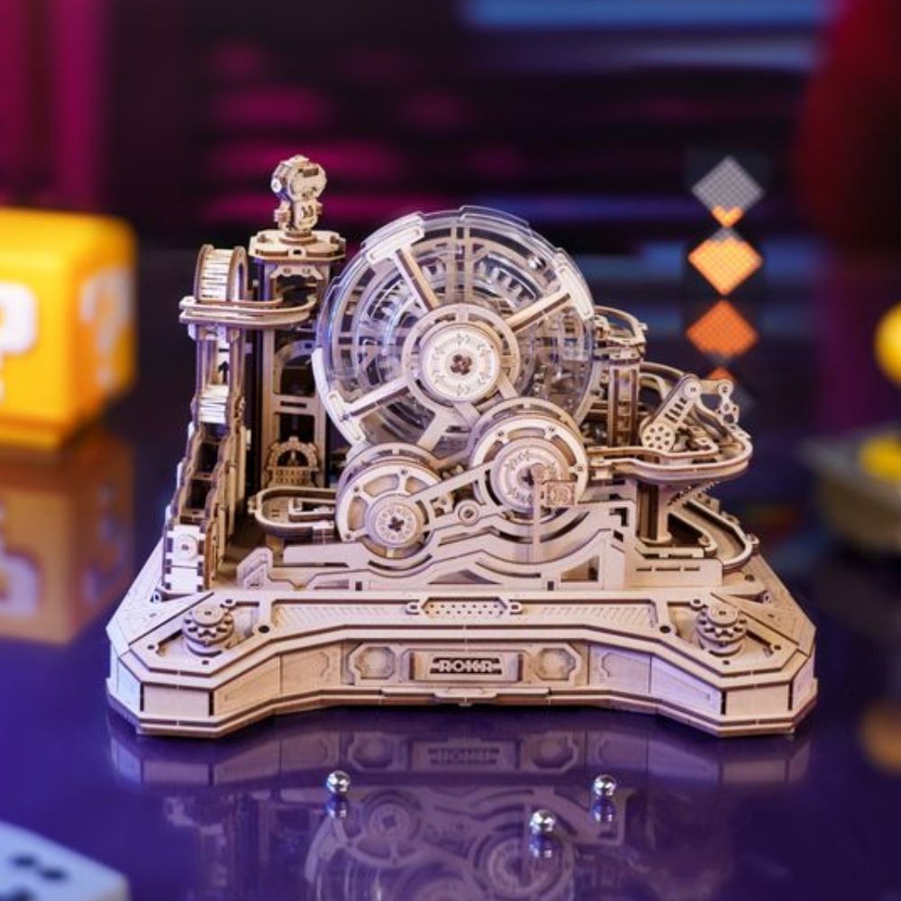 This 3D Wooden Puzzle is an interactive mechanical marble run that brings a vintage game‑controller shaped challenge to life. With 653 pieces and six thrilling stages, you'll guide metal balls using knobs, levers, and switches through ramps, a sky ring, and automatic lifts to reach the finish, complete with a copper bell victory sound. A rewarding build and play experience that blends puzzle solving, mechanical motion, and hands‑on fun, perfect for display and interactive entertainment.