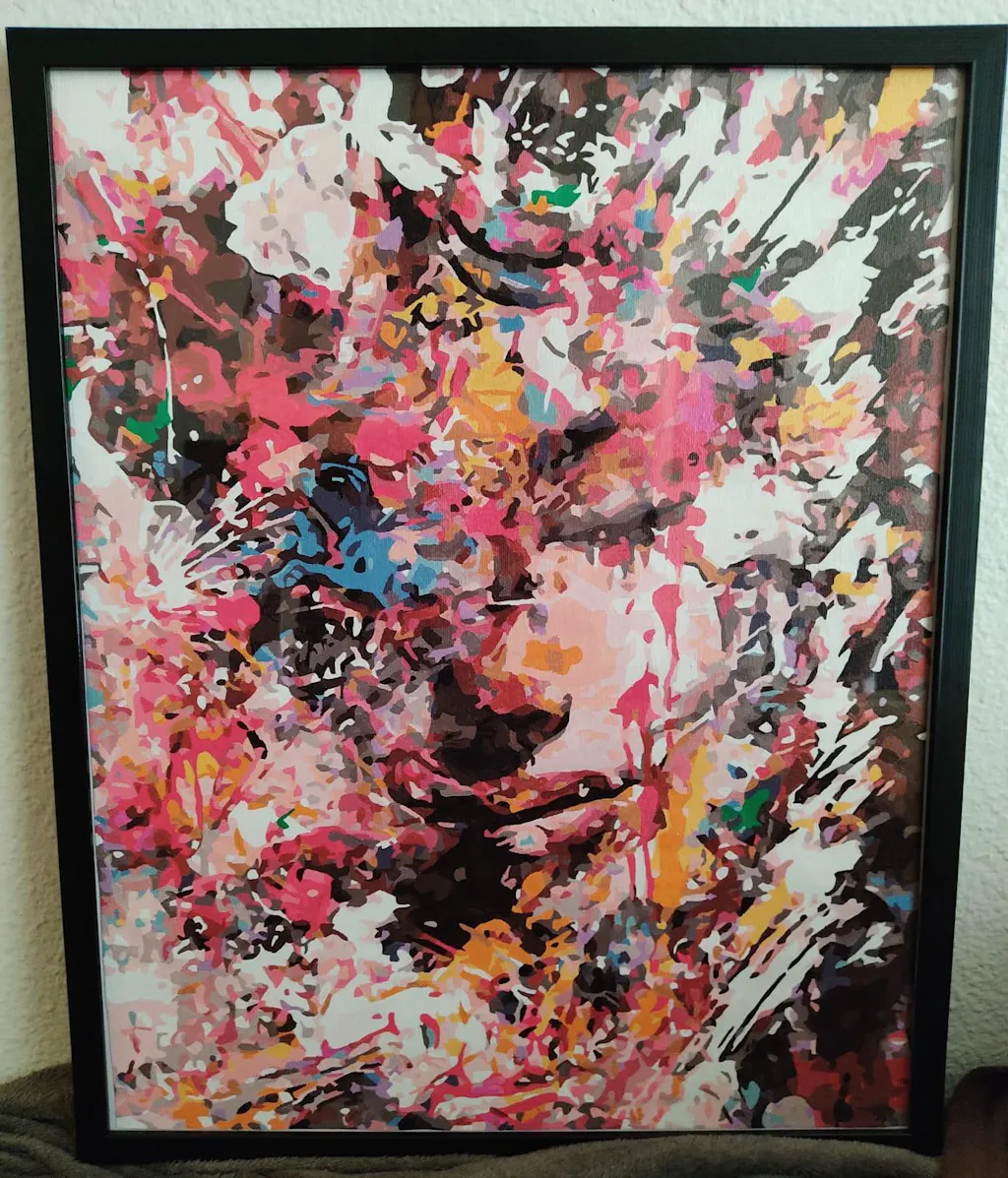 Full kit of paint by numbers already stretched on a wooden frame.