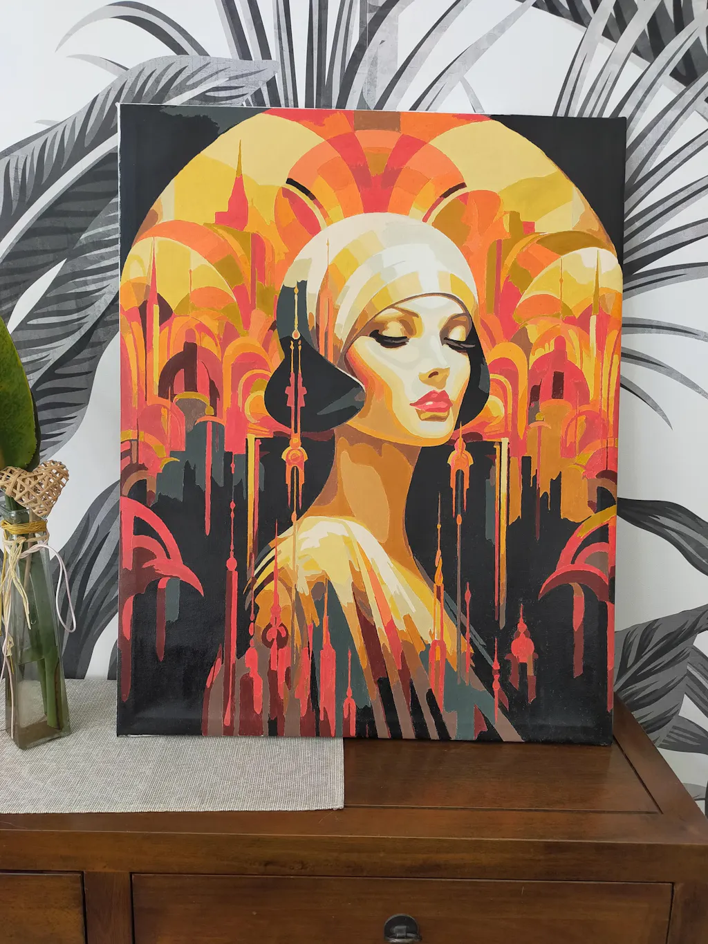 Full kit of paint by numbers already stretched on a wooden frame.