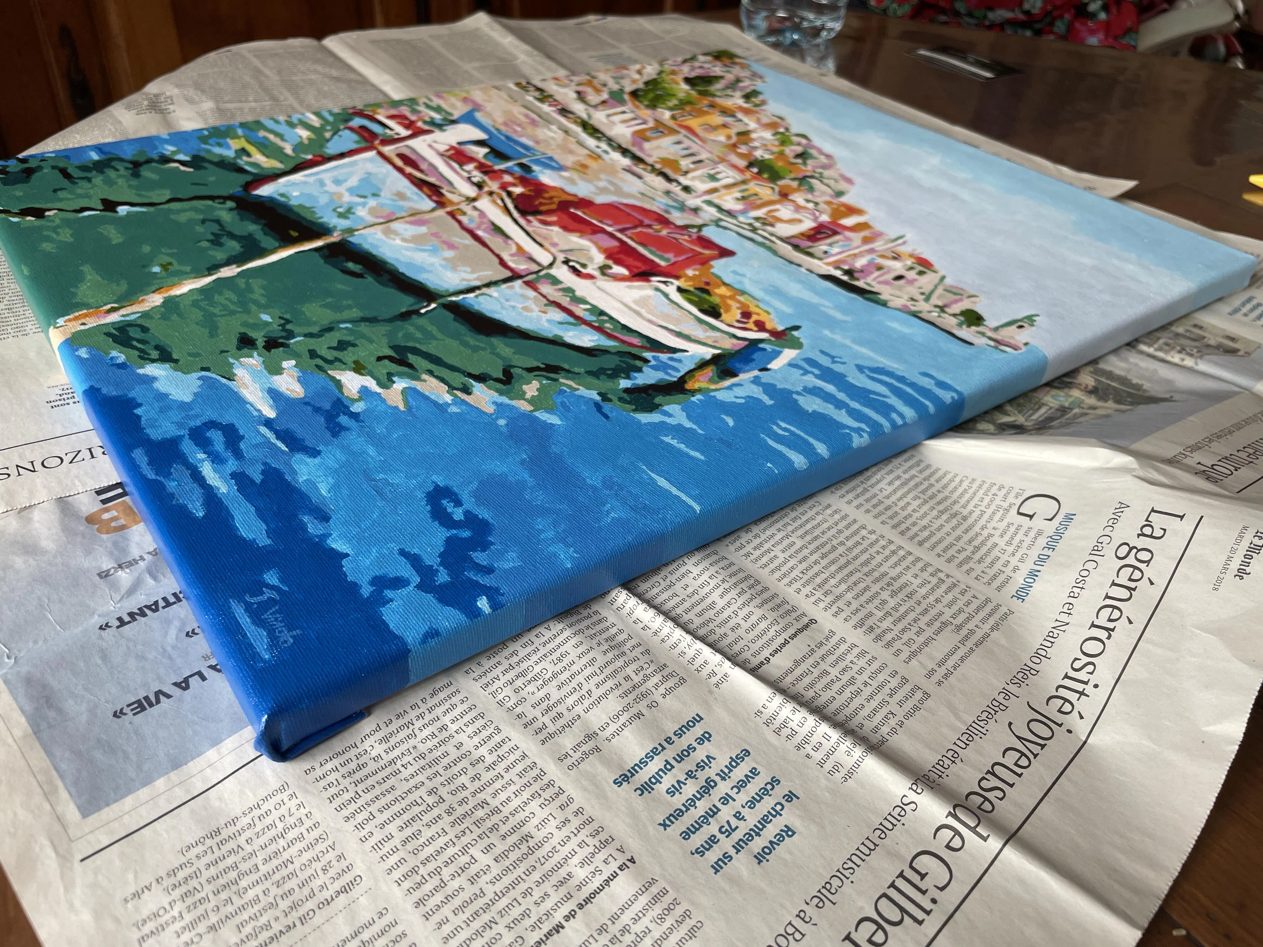 Full kit of paint by numbers already stretched on a wooden frame.