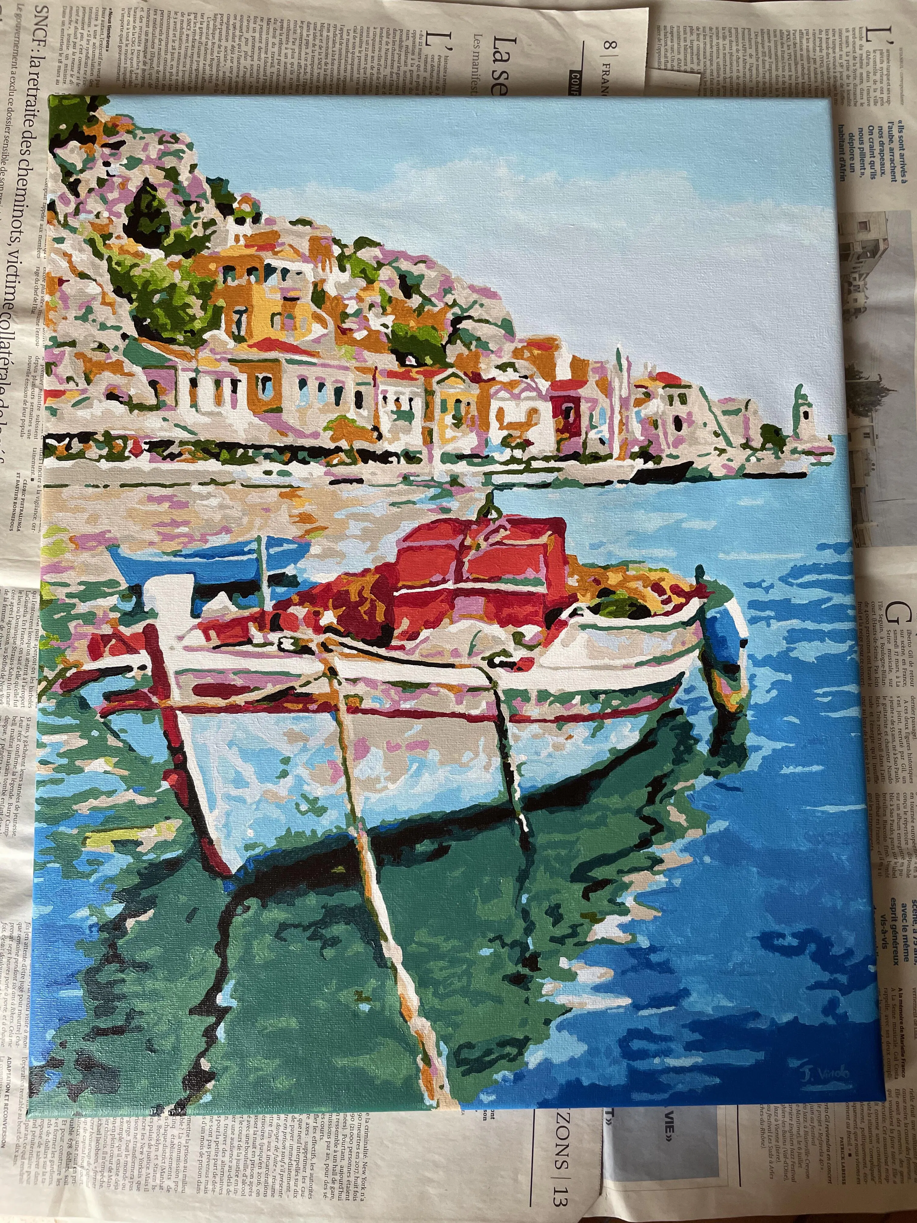 2) You will receive a ready-to-use kit containing the canvas with the numbered areas, the numbered pots of paints, paint brushes and a picture of the expected result to guide you. Let the journey begin!
