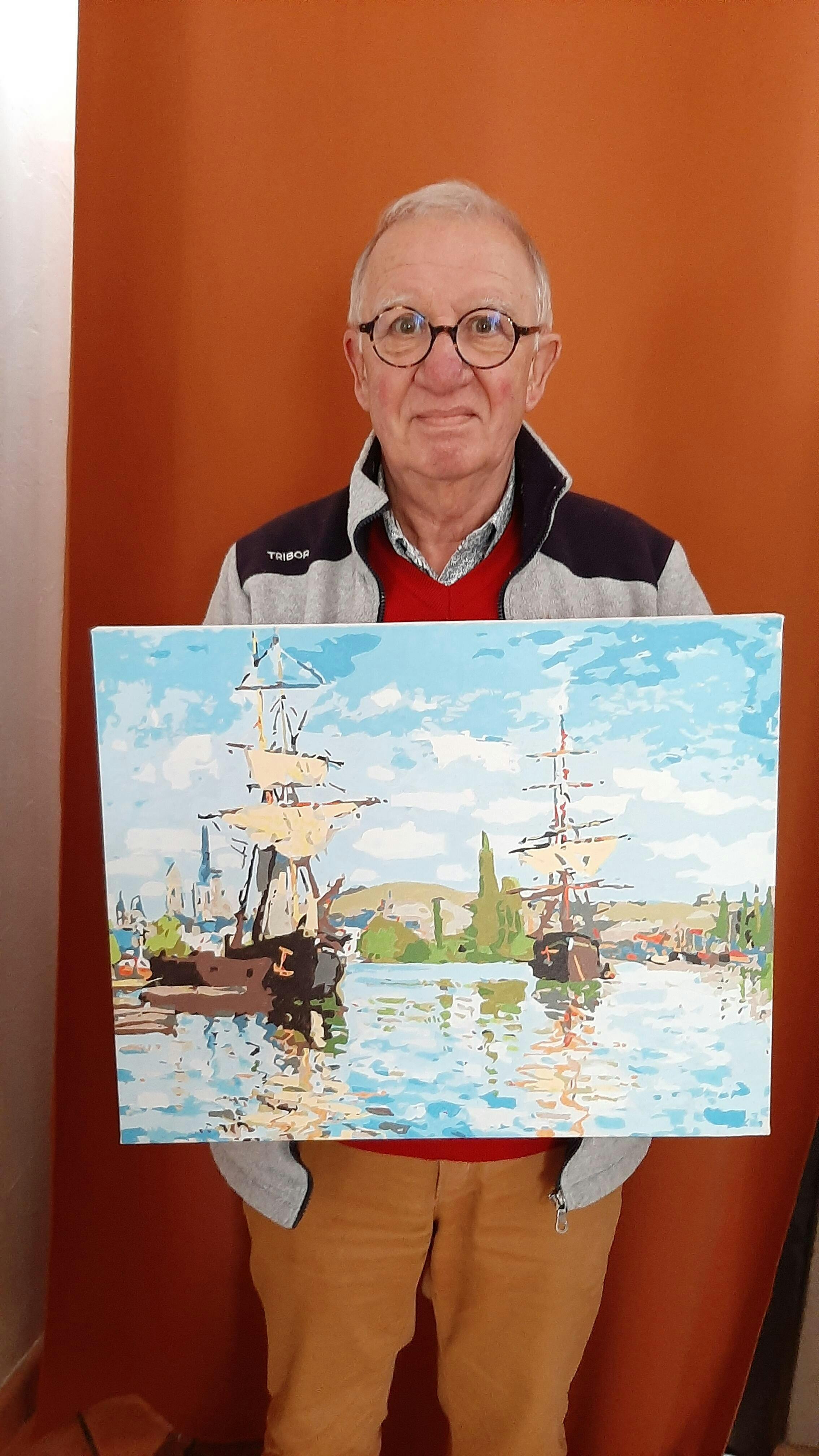 2) You will receive a ready-to-use kit containing the canvas with the numbered areas, the numbered pots of paints, paint brushes and a picture of the expected result to guide you. Let the journey begin!