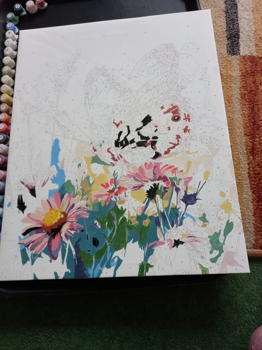 3) Paint each number on the canvas with it’s corresponding paint colour.