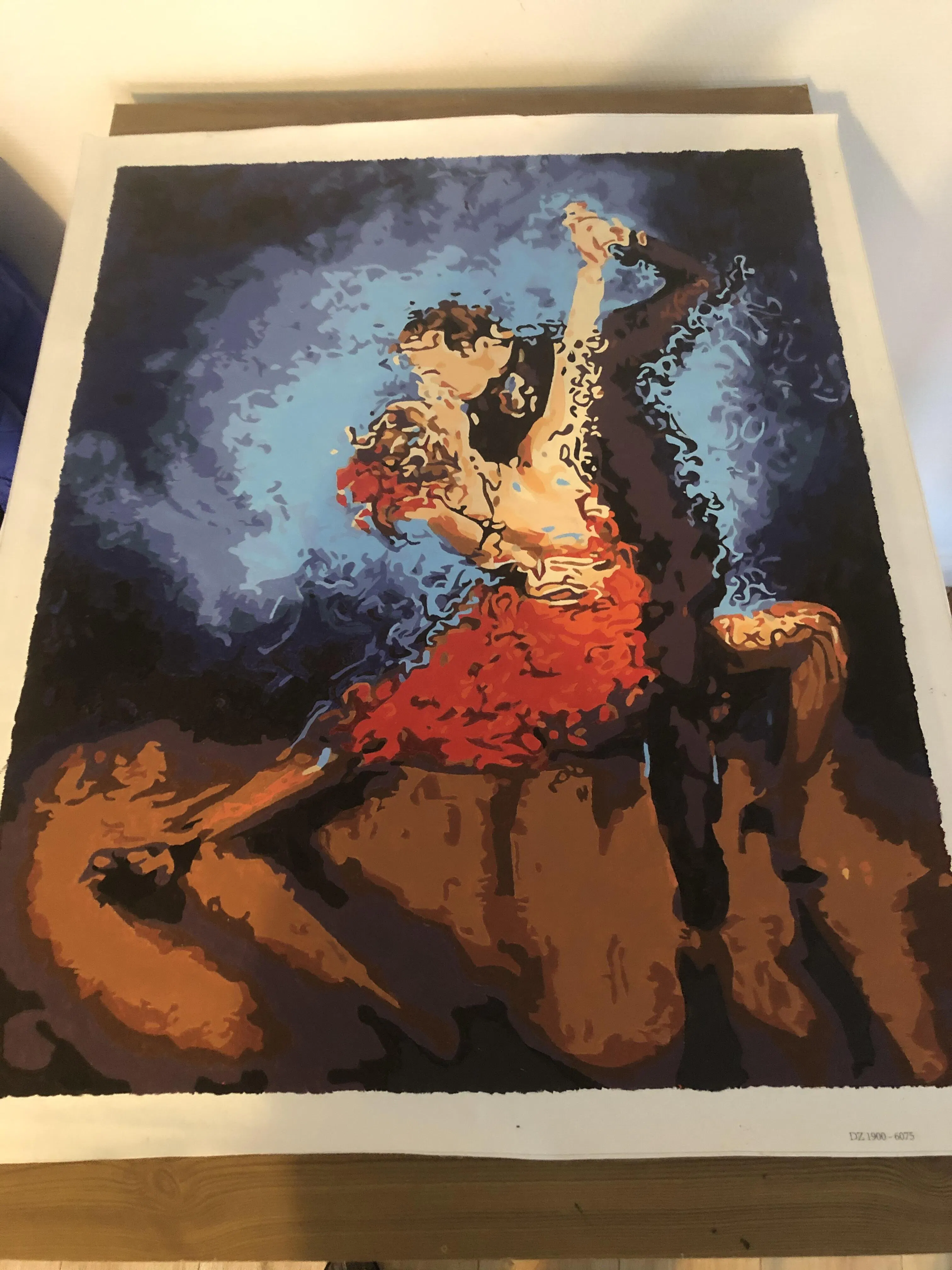 Full kit of paint by numbers with rolled canvas (no fold) and a do-it-yourself wooden frame.