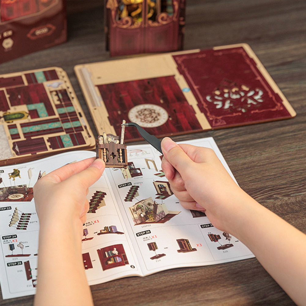 - Components: All the parts needed to create a detailed and intricate Book Nook