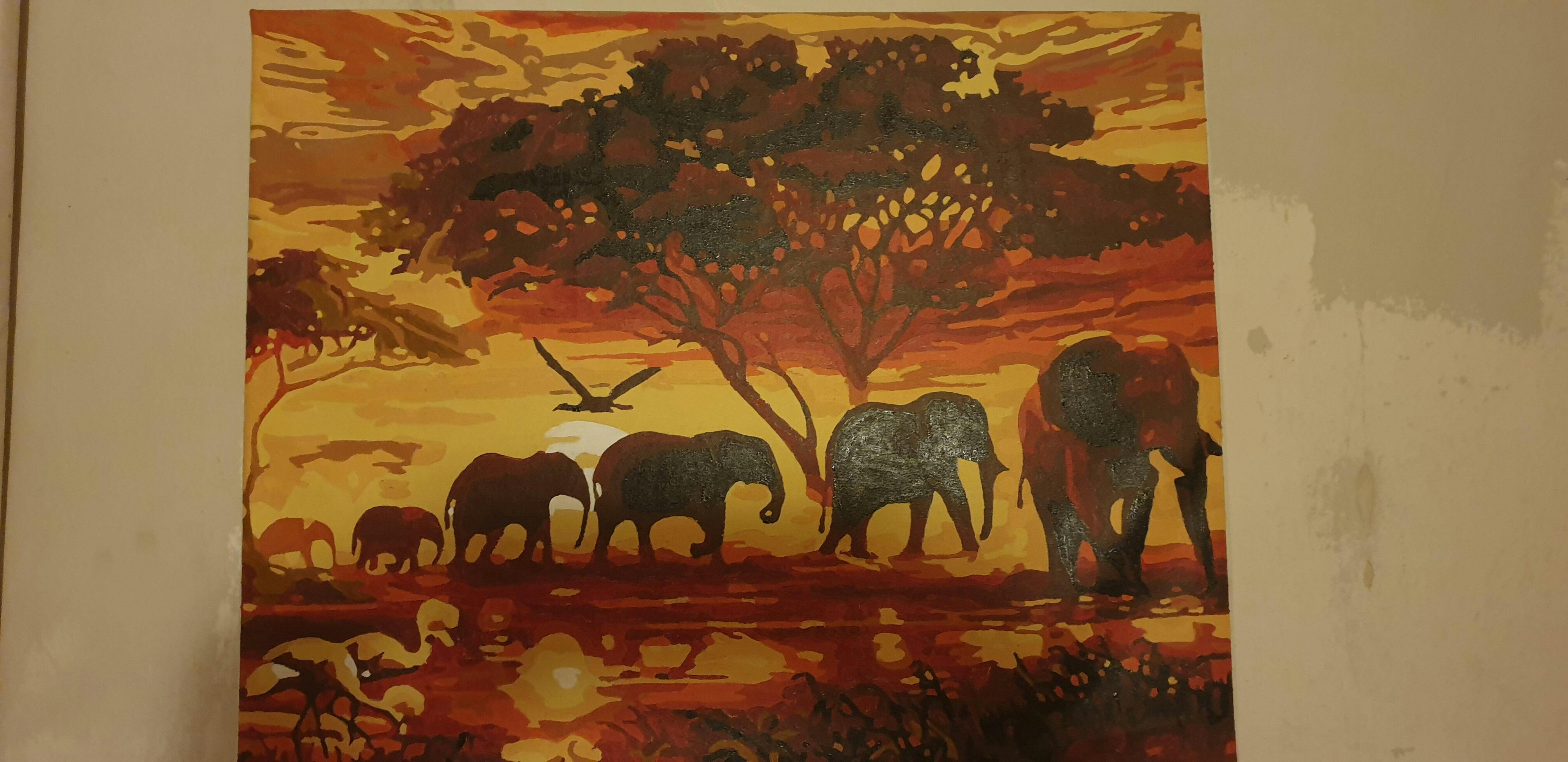 2) You will receive a ready-to-use kit containing the canvas with the numbered areas, the numbered pots of paints, paint brushes and a picture of the expected result to guide you. Let the journey begin!