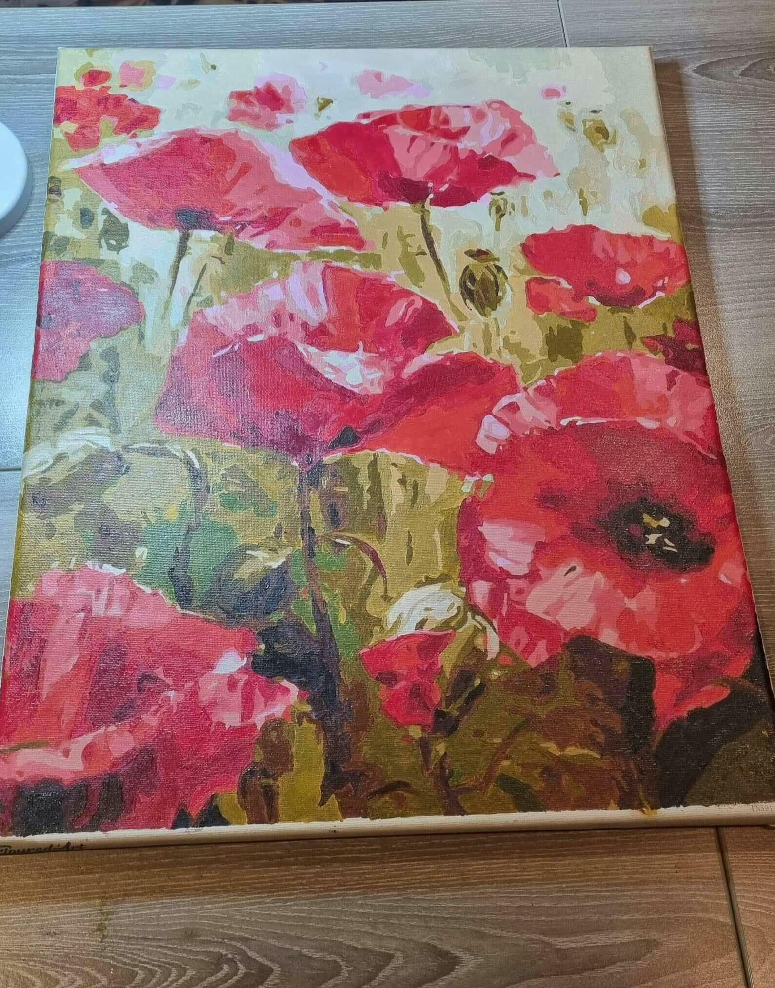 Full kit of paint by numbers already stretched on a wooden frame.