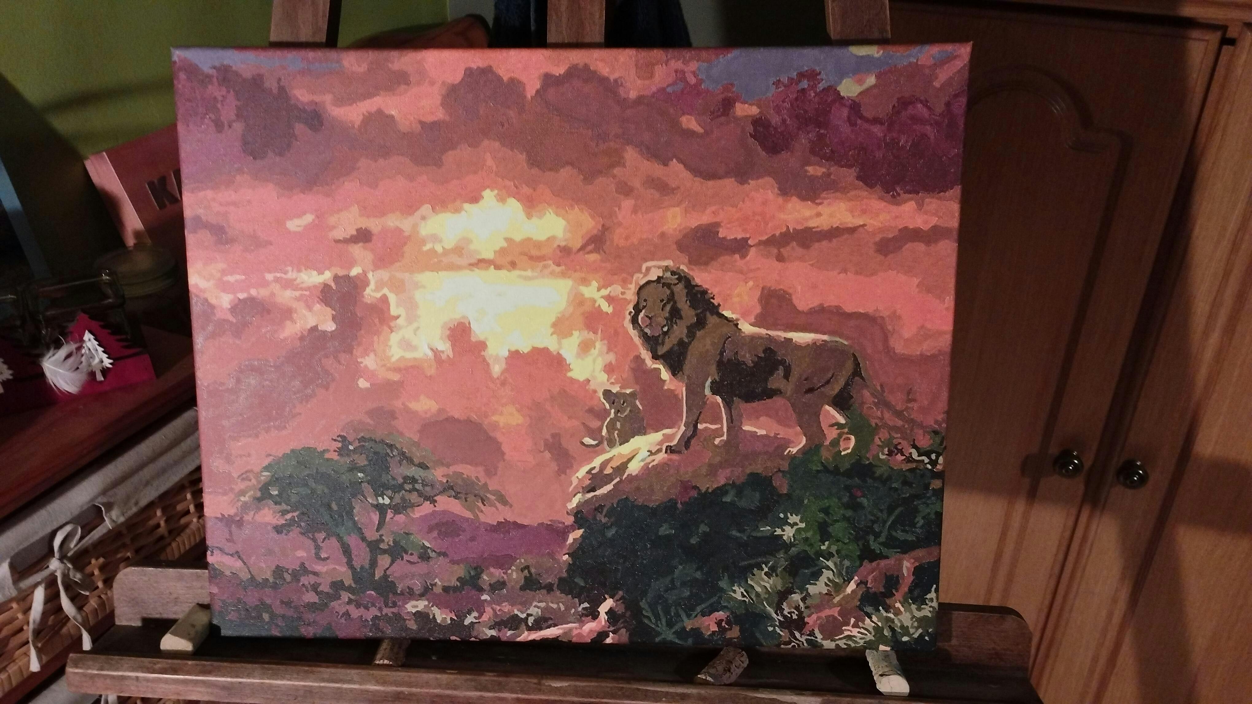 Full kit of paint by numbers already stretched on a wooden frame.