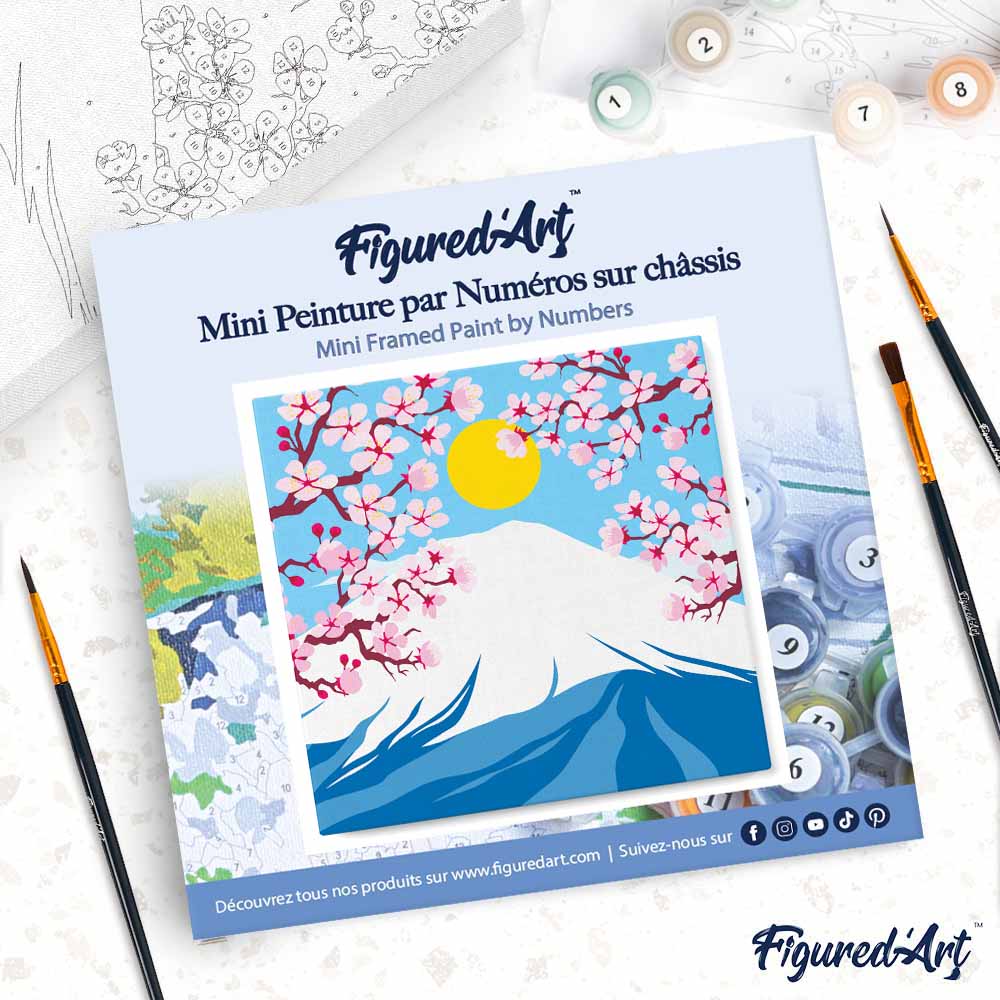 Model: Mini Paint by numbers Cherry blossom and Fuji Mt. 20x20cm already framed