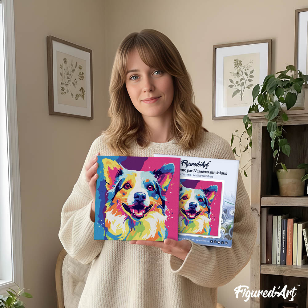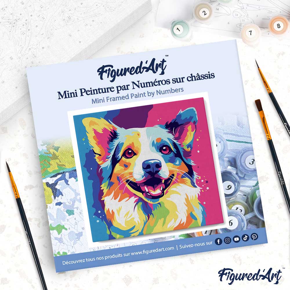 Model: Mini Paint by numbers Dog Abstract Pop Art 20x20cm already framed