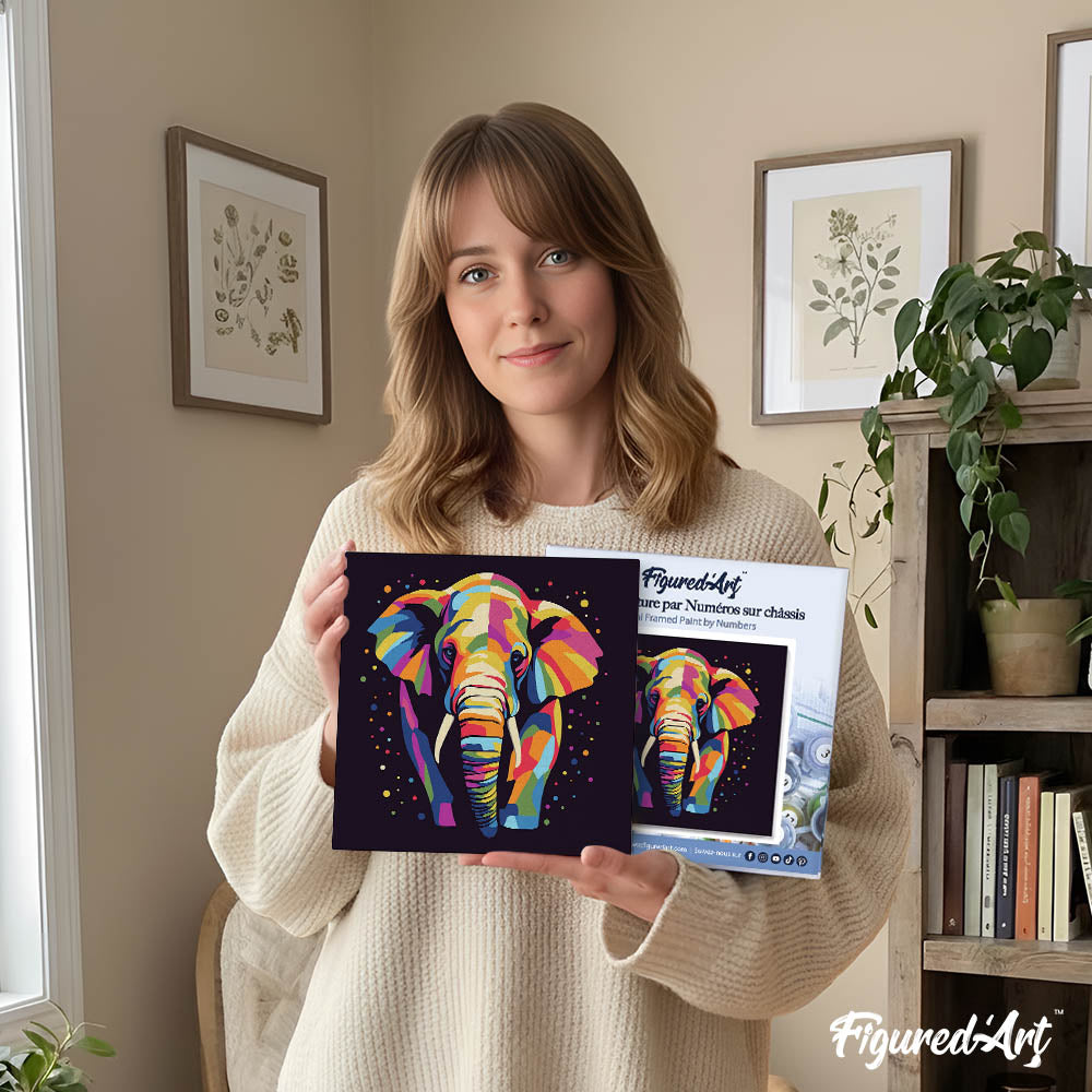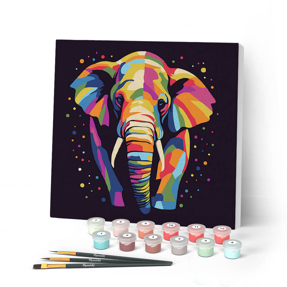Model: Mini Paint by numbers Elephant Abstract Pop Art 20x20cm already framed