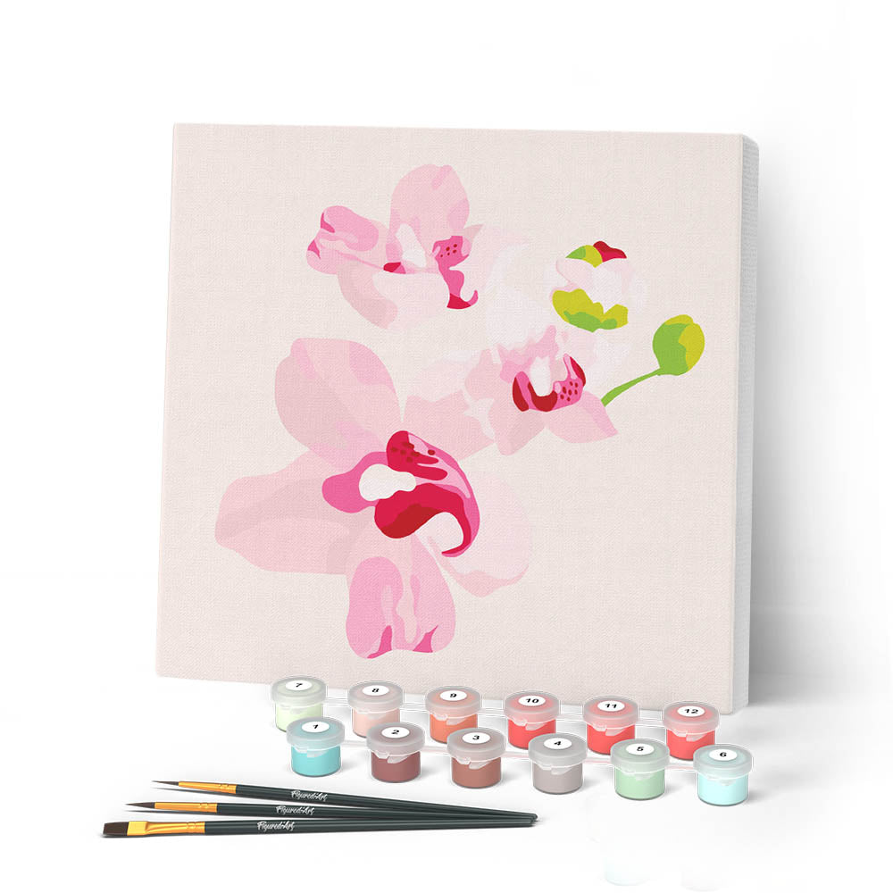 Model: Mini Paint by numbers Pink Orchids Set 2 of 4 20x20cm already framed