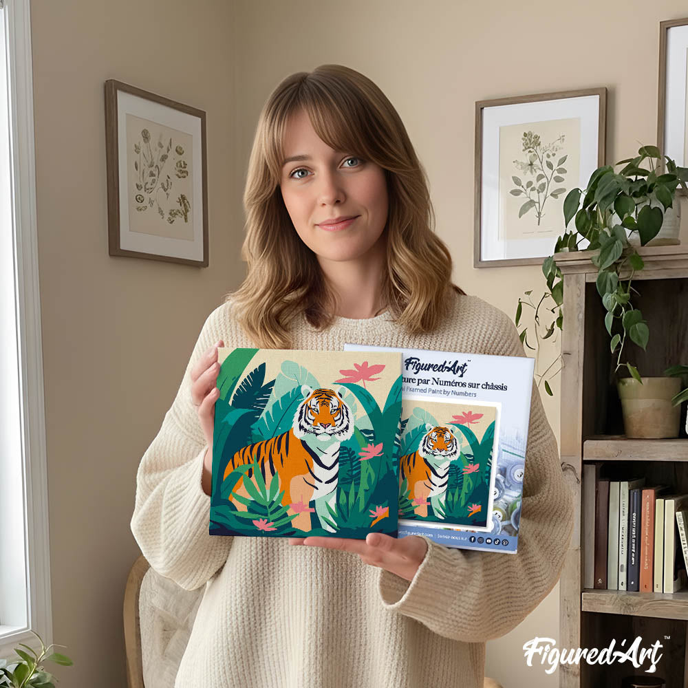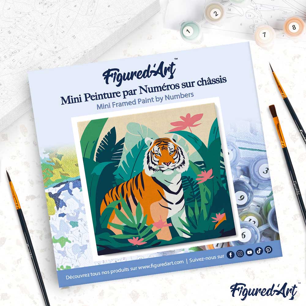 Model: Mini Paint by numbers Tropical Bengal Tiger 20x20cm already framed