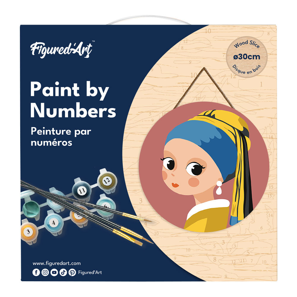 Paint by numbers on Wood Slice - Girl with Earring Figured'Art UK