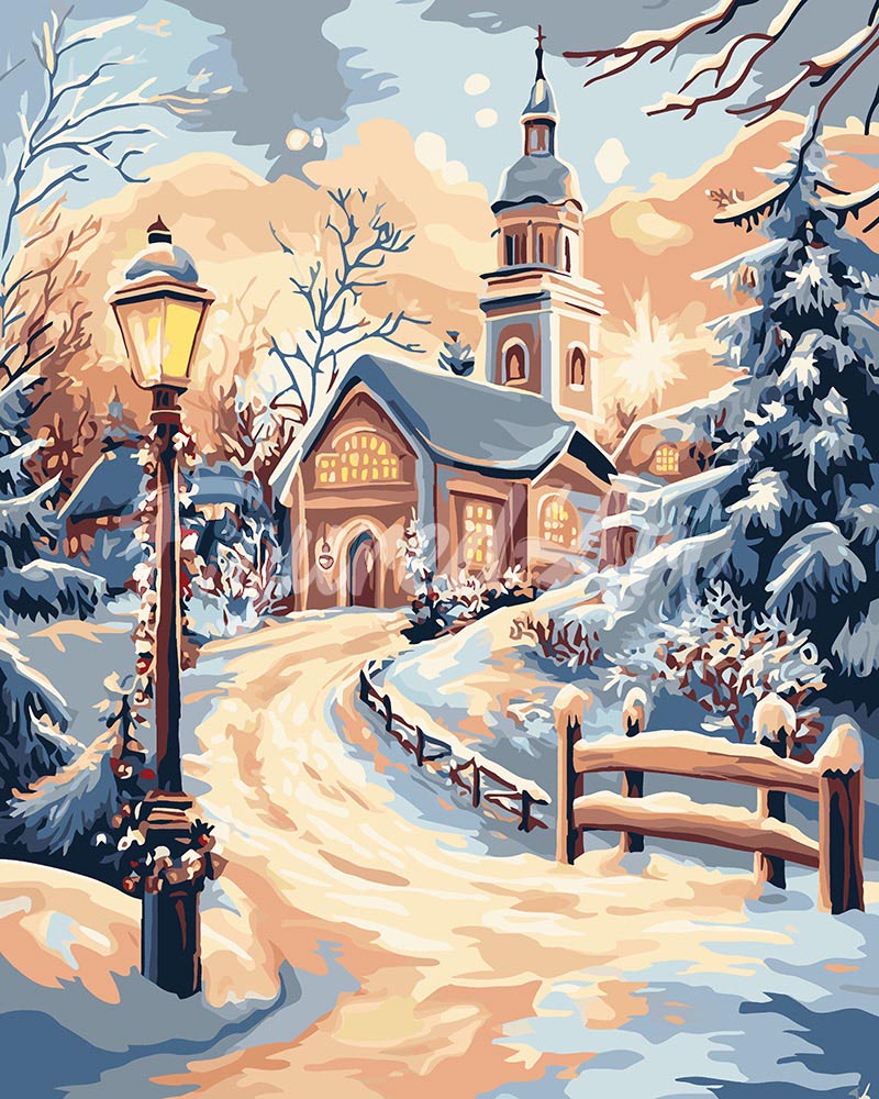 Paint by numbers kit for adults Path to the Chapel Figured'Art UK
