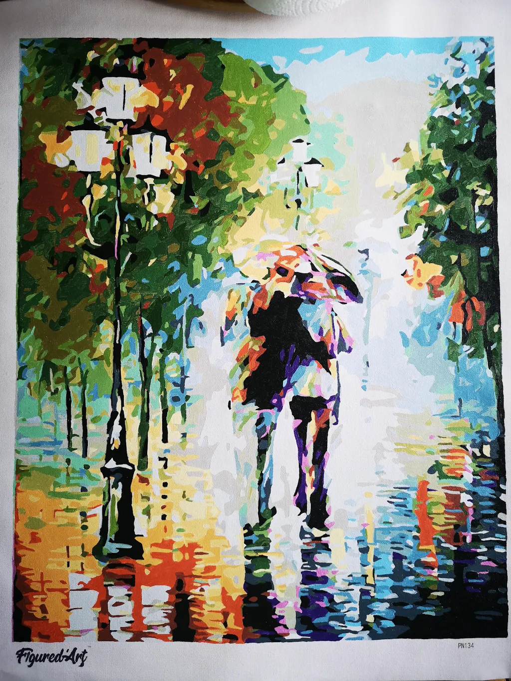 Full kit of paint by numbers with rolled canvas (no fold) and a do-it-yourself wooden frame.