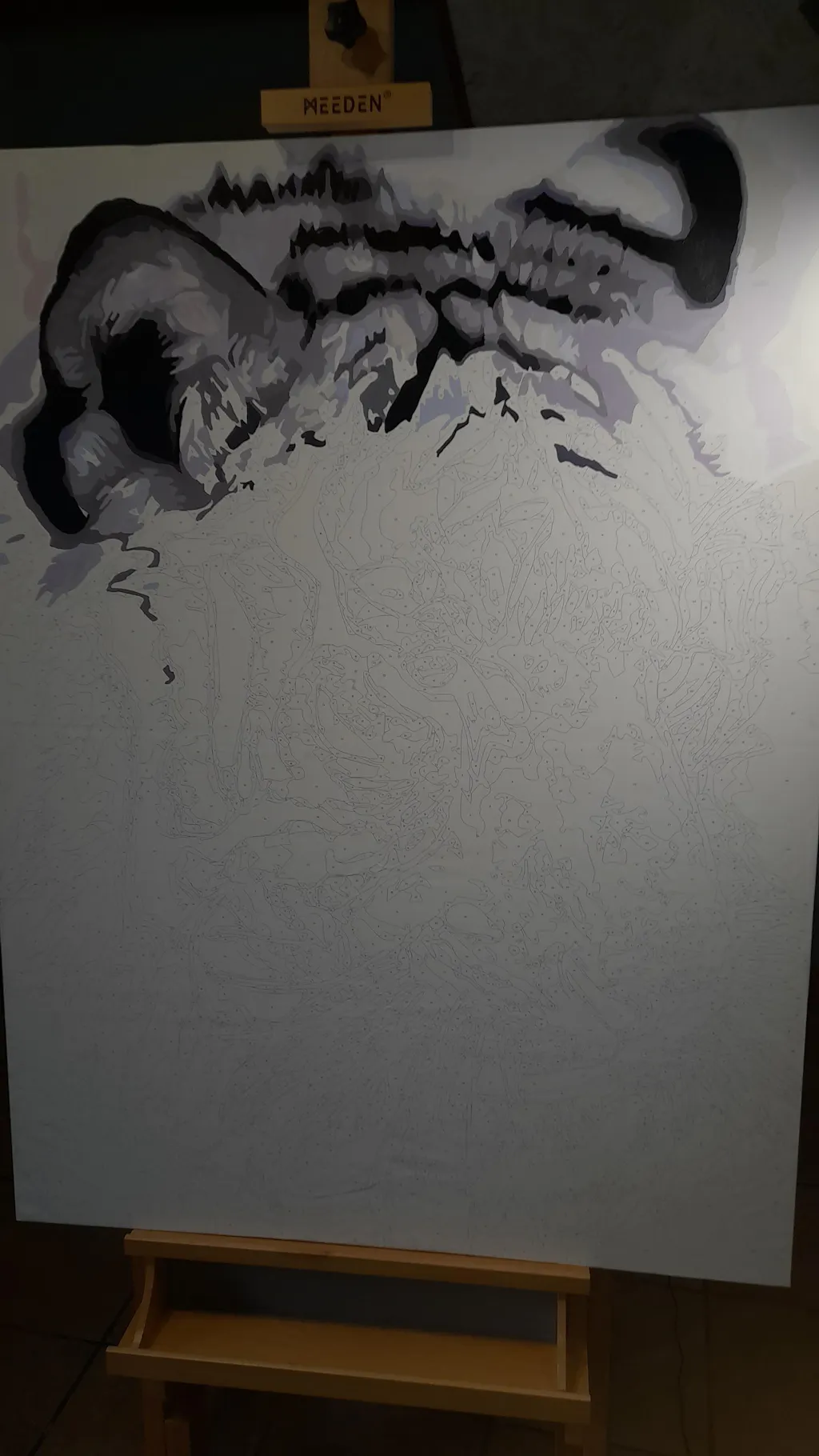 Full kit of paint by numbers already stretched on a wooden frame.