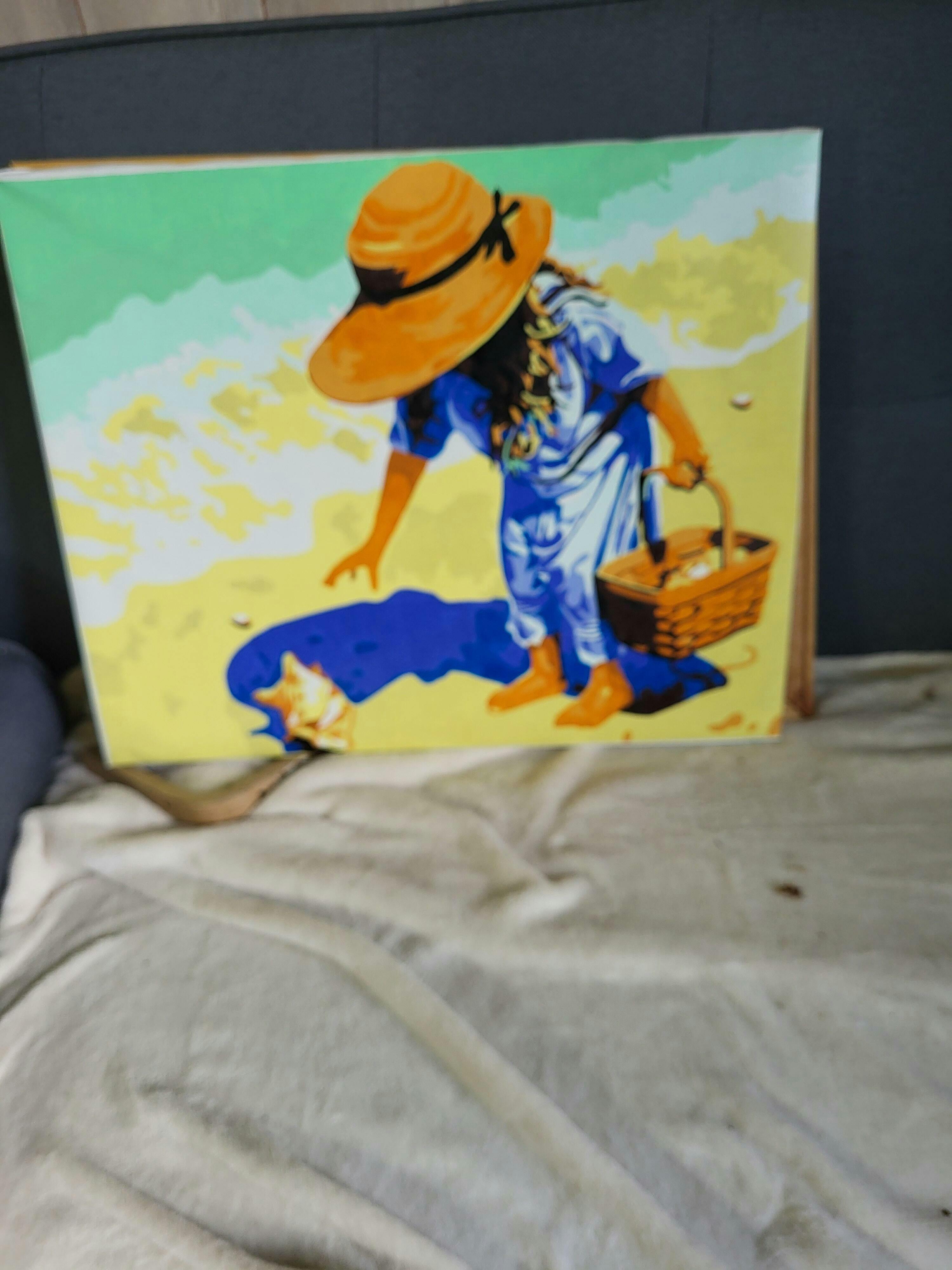 Full kit of paint by numbers already stretched on a wooden frame.