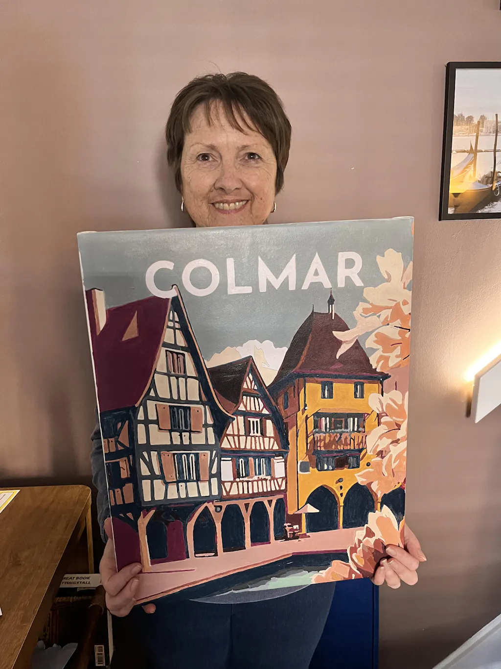 2) You will receive a ready-to-use kit containing the canvas with the numbered areas, the numbered pots of paints, paint brushes and a picture of the expected result to guide you. Let the journey begin!