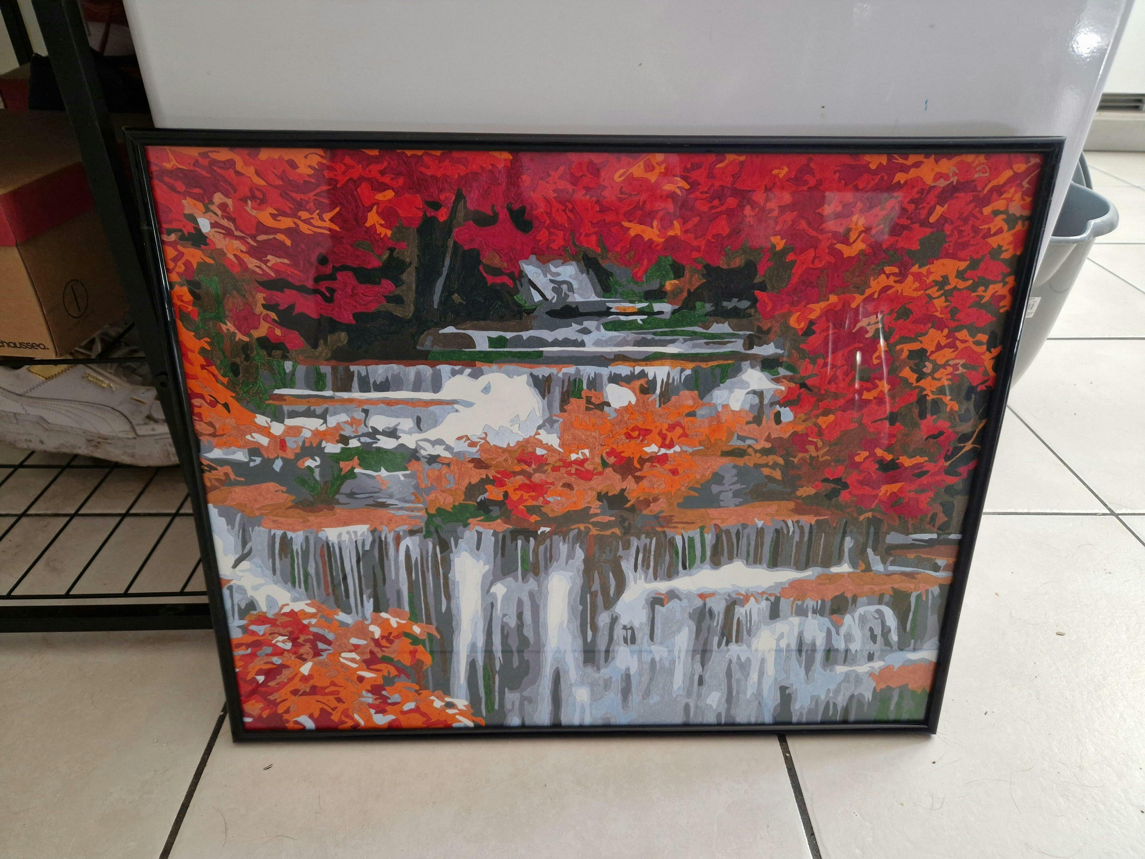 Full kit of paint by numbers with rolled canvas (no fold) and a do-it-yourself wooden frame.